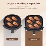 - [Healthy Fried Cooking] Our 5.3 Qt air fryer with a 360° rapid air circulation technology, allows you to evenly crisp every inch of the food, and enjoy the maximum crispy textures as traditional deep frying with up to 85% less fat. The family-friendly cooking capacity can serve for 3~5 people in just one go, ensuring that you prepare meals for the whole family and even entertain guests with ease.